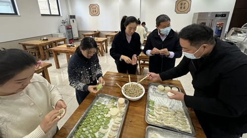 上午,商都控股公司在員工餐廳組織開展了溫馨滿滿的員工包餃子活動。中午,當第一輪餃子煮熟后,由公司黨員和志愿者送給在公司附近忙碌的環衛工人、保安保潔人員等,讓他們也共享冬至熱騰騰的餃子。