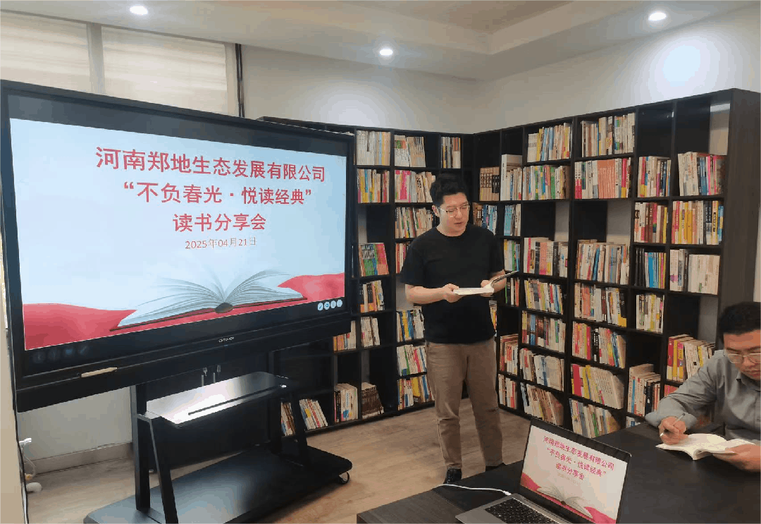 鄭地生態(tài)公司在職工書屋舉辦了“不負(fù)春光,悅讀經(jīng)典”讀書分享會(huì)。業(yè)務(wù)協(xié)調(diào)部張磊分享了勵(lì)志經(jīng)典《名人傳》。這本書里的名人們的成功秘密,讓大家認(rèn)識(shí)到自我管理和不懈努力的重要性。綜合服務(wù)部杜憬軒分享專業(yè)書籍《一本書讀懂信貸》,書里的信貸基礎(chǔ)知識(shí)、信貸調(diào)查方法和對(duì)貸款項(xiàng)目評(píng)估等專業(yè)知識(shí)都讓大家深受啟發(fā)。