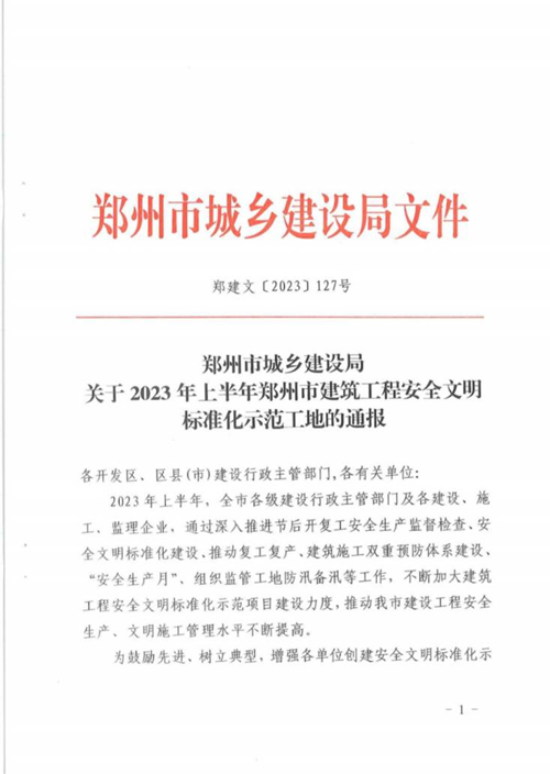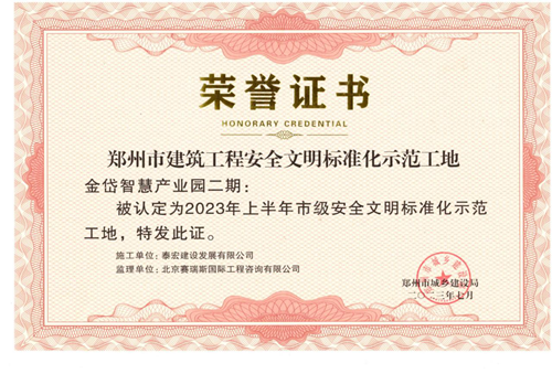 近日,經(jīng)鄭州市城鄉(xiāng)建設局評選,河南鄭地科創(chuàng)產業(yè)發(fā)展有限公司投資建設的金岱智慧產業(yè)園二期項目榮獲“2023年上半年鄭州市建筑工程安全文明標準化示范工地”榮譽稱號。