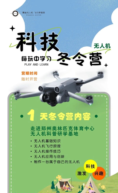鄭州奧體翼能無人機研學(xué)基地是集無人機科普、研學(xué)、開發(fā)、應(yīng)用、賽事運營的綜合服務(wù)平臺,不僅擁有1000余平方米的無人機科普教育基地,還擁有無人機駕駛執(zhí)照的培訓(xùn)資格。寒假期間,依托鄭州奧體中心開闊場館,翼能無人機將科普知識與實操表演完美結(jié)合,分別開設(shè)1至5天不等的科技冬令營,代領(lǐng)孩子們放飛科技夢,在嗨玩中學(xué)習(xí)。
