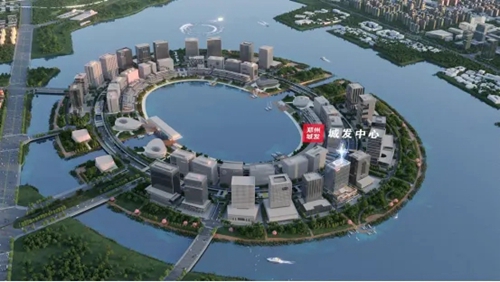 金融島,位于鄭州北龍湖中部核心,由雙環44棟高層建筑圍合而成,以3.7公里宛如玉帶的南北運河為連接,與CBD共同形成寓意吉祥的“如意”造型。