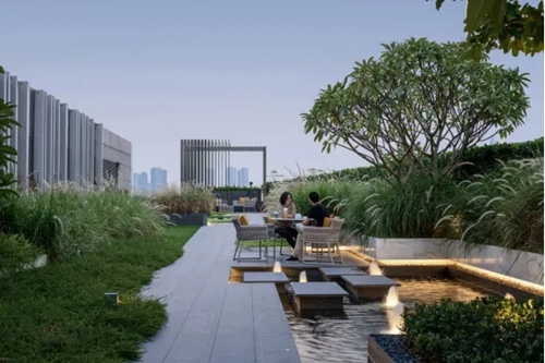 城發中心3樓露臺打造空中花園,融社交休憩空間、開放式休息區域、綠色商務空間于一體,為企業打造公共功能空間的附加值。