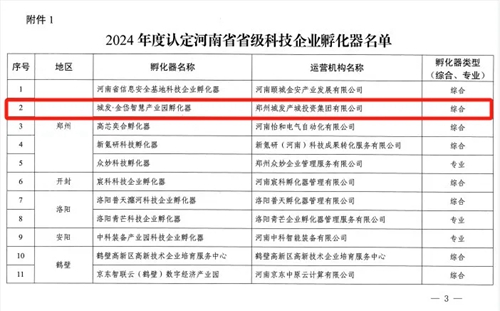 近日,河南省科學技術廳發布通知,公布2024年度河南省省級科技企業孵化器、河南省眾創空間的通知,經推薦、專家評審、核查、廳長辦公會研究、公示等程序,同意城發·金岱智慧產業園等21家單位認定為河南省省級科技企業孵化器,同意河南應用技術職業學院眾創空間等33家單位備案為河南省眾創空間。