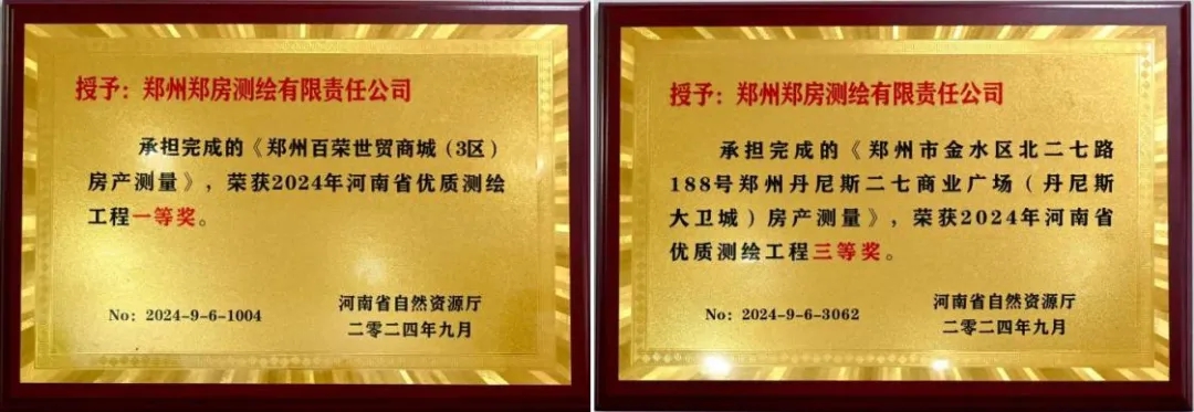 近日,河南省自然資源廳發(fā)布2024年“河南省優(yōu)質(zhì)測(cè)繪工程獎(jiǎng)”評(píng)選結(jié)果,其中,鄭州鄭房測(cè)繪有限責(zé)任公司獲得“河南省優(yōu)質(zhì)測(cè)繪工程獎(jiǎng)”一等獎(jiǎng)1項(xiàng)、三等獎(jiǎng)1項(xiàng)。