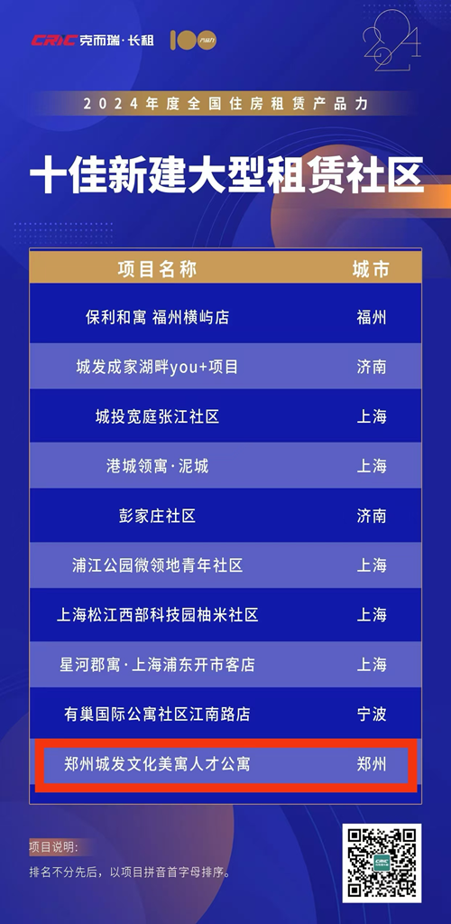 鄭州城發(fā)文化美寓人才公寓獲評(píng)2024年度“十佳新建大型租賃社區(qū)”
