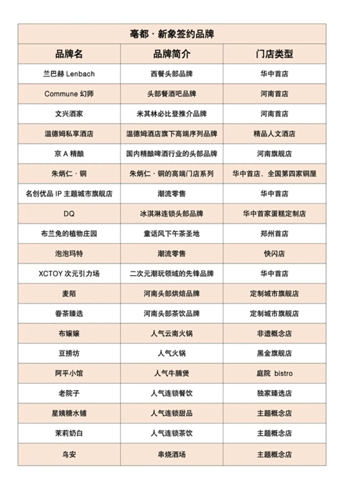 發(fā)布會上,蘭巴赫LENBACH華中首店、COMMUNE幻師河南首店、米其林必比登推薦的文興酒家河南首店、溫德姆私享酒店、京A精釀河南旗艦店、朱炳仁·銅全國第四座銅屋“中原銅屋”華中首店、名創(chuàng)優(yōu)品IP主題城市旗艦店華中首店、XCTOY次元引力場華中首店、DQ華中首家蛋糕定制門店、布蘭兔的植物莊園鄭州首店…等品牌確定進(jìn)駐項目,占比超30%的首進(jìn)品牌,讓亳都·新象成為鄭州首發(fā)經(jīng)濟(jì)的策源地之一。