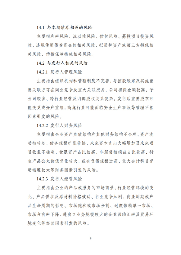 九、加強優質企業債券事中事后監管,切實防范償債風險。